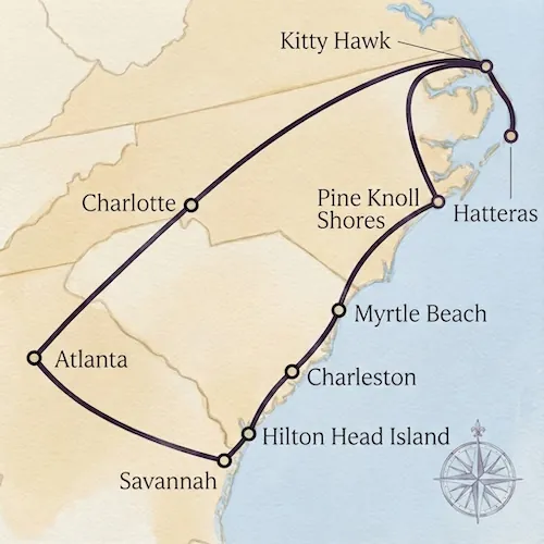 Geschichte hautnah: Vom Ort des ersten Motorflugs der Gebrüder Wright bis zur Antebellum-Architektur in Charleston und Savannah.
