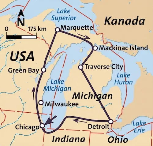 Die große Umrundung des Lake Michigan: Von der Skyline Chicagos bis zur rauen Wildnis der Upper Peninsula.