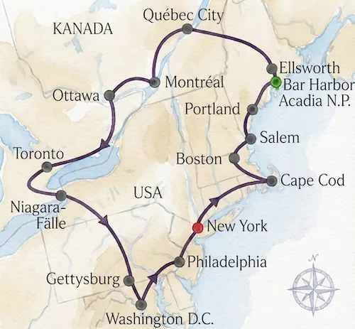 Eine epische "Zwei-Länder"-Rundreise, von der Weltmetropole New York über das französische Flair Quebecs bis nach Washington D.C.