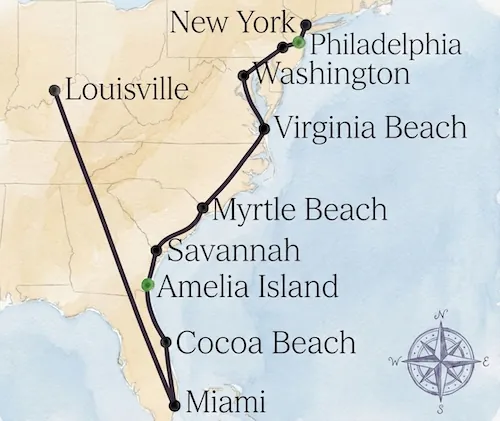 Der ultimative Roadtrip entlang der gesamten Atlantikküste, von Miami über das historische Savannah bis Virginia Beach.