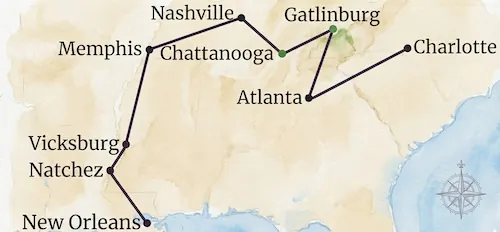 Erleben Sie die legendäre "Music Triangle" – Nashville, Memphis und New Orleans – sowie die Great Smoky Mountains.