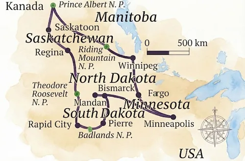 - Ein letzter, langer Fahrtag quer durch North Dakota und Minnesota bringt Sie zurück zum Ausgangspunkt.
