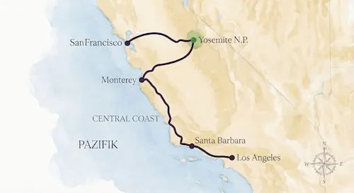 Vom weltberühmten Yosemite Nationalpark über die dramatischen Klippen von Big Sur bis zu den Metropolen San Francisco und Los Angeles.
