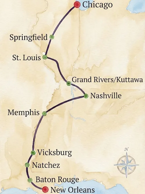 Ein epischer Roadtrip von den Wolkenkratzern Chicagos entlang des Mississippi bis zur Wiege des Jazz in New Orleans.