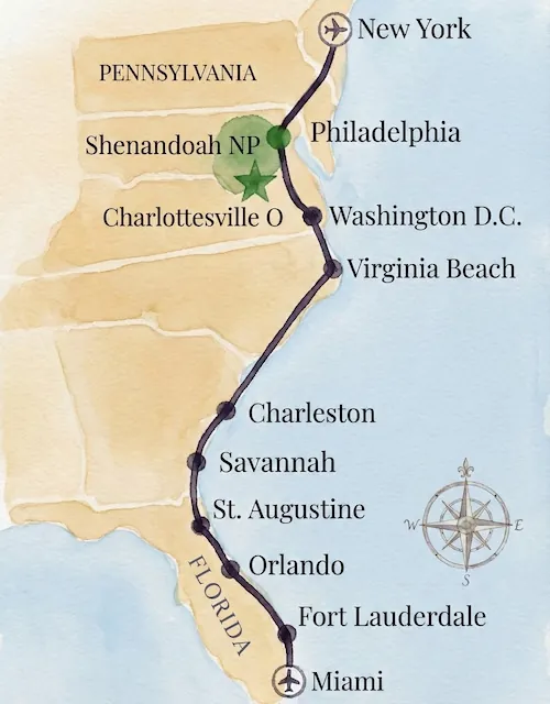 Ein epischer Roadtrip entlang der Atlantikküste, vom "Big Apple" bis zum "Venedig Amerikas" in Florida.