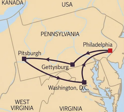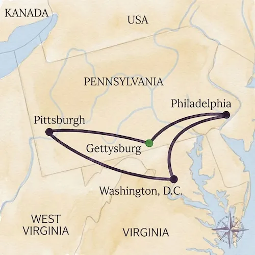 Die Wiege der Nation intensiv erleben: Von der Unabhängigkeitserklärung in Philadelphia bis zum Bürgerkrieg in Gettysburg.
