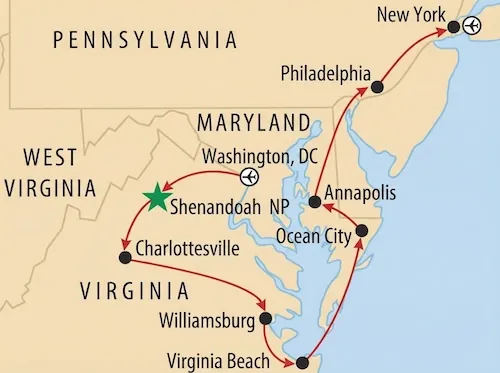 Die perfekte Balance aus Natur im Shenandoah Nationalpark und Erholung am Strand von Virginia Beach.