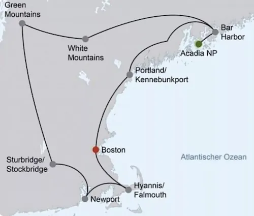 Vom spektakulären Acadia Nationalpark über die Gipfel der White und Green Mountains bis zu den legendären Stränden von Cape Cod.