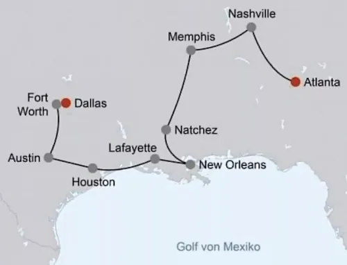 Ein Roadtrip voller Mythen – vom Südstaaten-Flair in Natchez über das NASA Space Center bis zum "Wilden Westen" in Fort Worth.