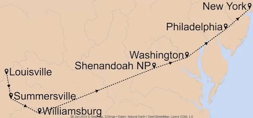 Von der ländlichen Schönheit West Virginias und dem Shenandoah Nationalpark bis zur "Wiege der Nation" in Philadelphia.