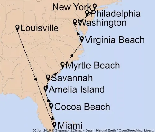 4. Tag: Flug von Louisville nach Miami Beach (ca. 1482 km)