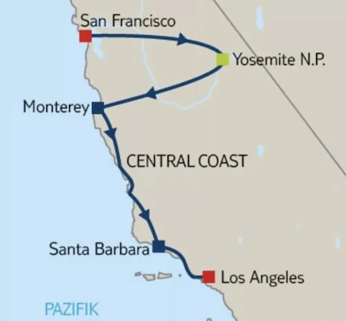 Vom weltberühmten Yosemite Nationalpark über die dramatischen Klippen von Big Sur bis zu den Metropolen San Francisco und Los Angeles.