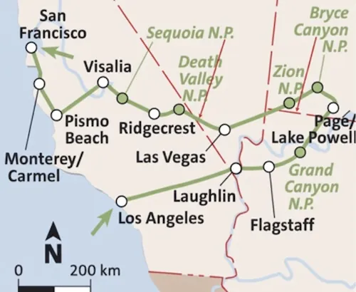 Los Angeles über die Route 66, den Grand Canyon bis zu den Riesenbäumen im Sequoia NP und San Francisco.