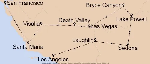 Los Angeles über Las Vegas, den Bryce Canyon, Death Valley bis zu den Riesenbäumen im Sequoia Nationalpark