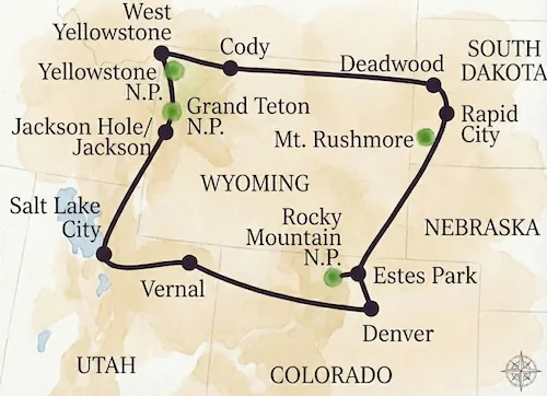 Von Mount Rushmore über die Wunder des Yellowstone und Grand Teton Nationalparks bis zu den Spuren der Dinosaurier.