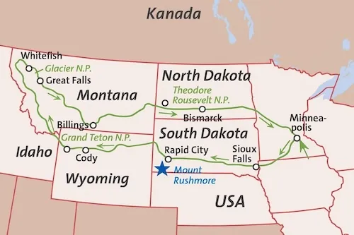 Von Mount Rushmore über Yellowstone und Glacier bis zu den historischen Stätten des Wilden Westens.