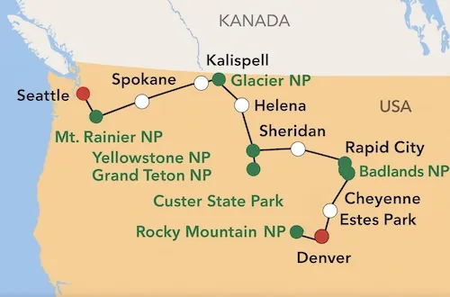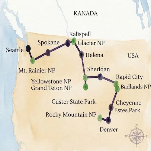 Von Mount Rushmore über Yellowstone und Glacier bis in die legendären Westernstädte.