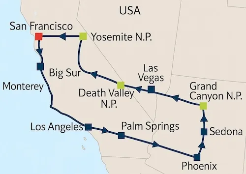 - Anschließend Rückfahrt nach San Francisco, dem Ausgangspunkt Ihrer Reise.