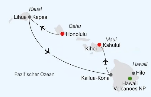 Essenz dieser Reise: klassischer Hawaii Insel-Hopping Überblick!